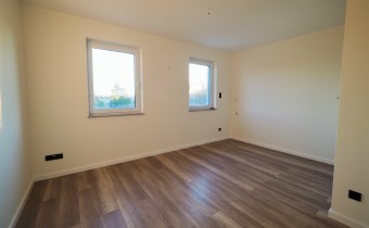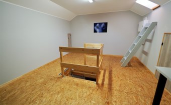 - Piętro: sypialnia 17 m2, dwa pokoje (2 x 10 m2), łazienka, korytarz; Strych